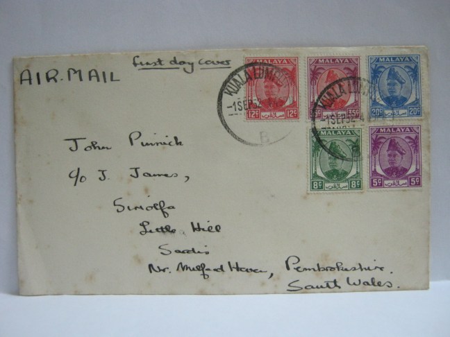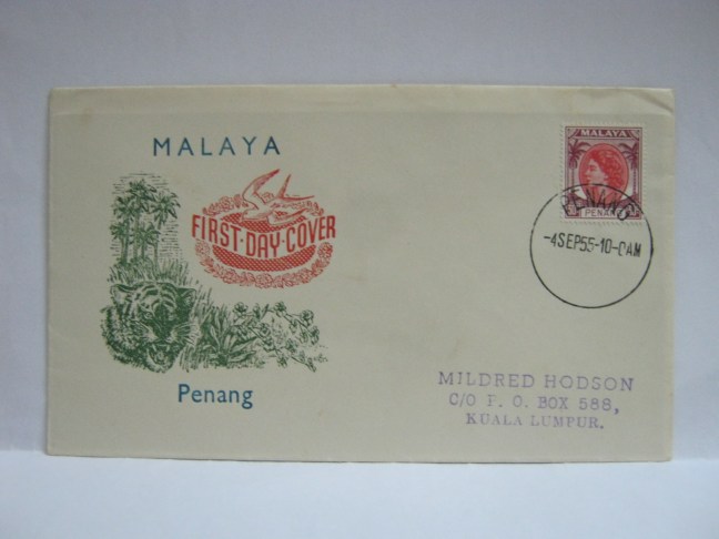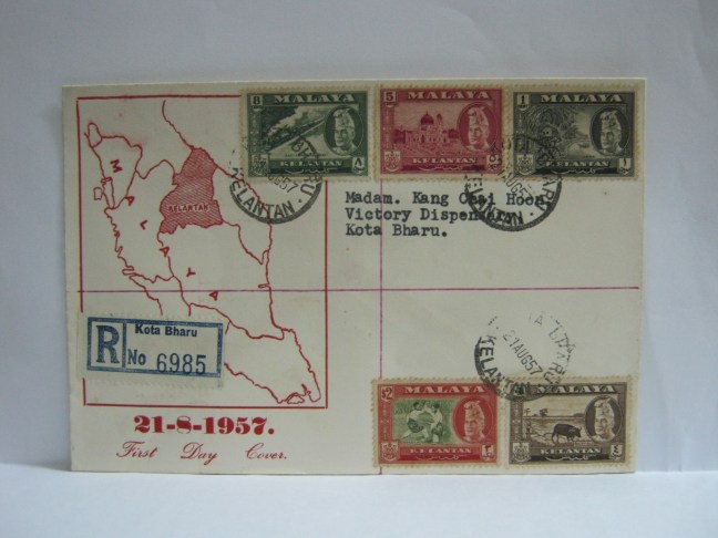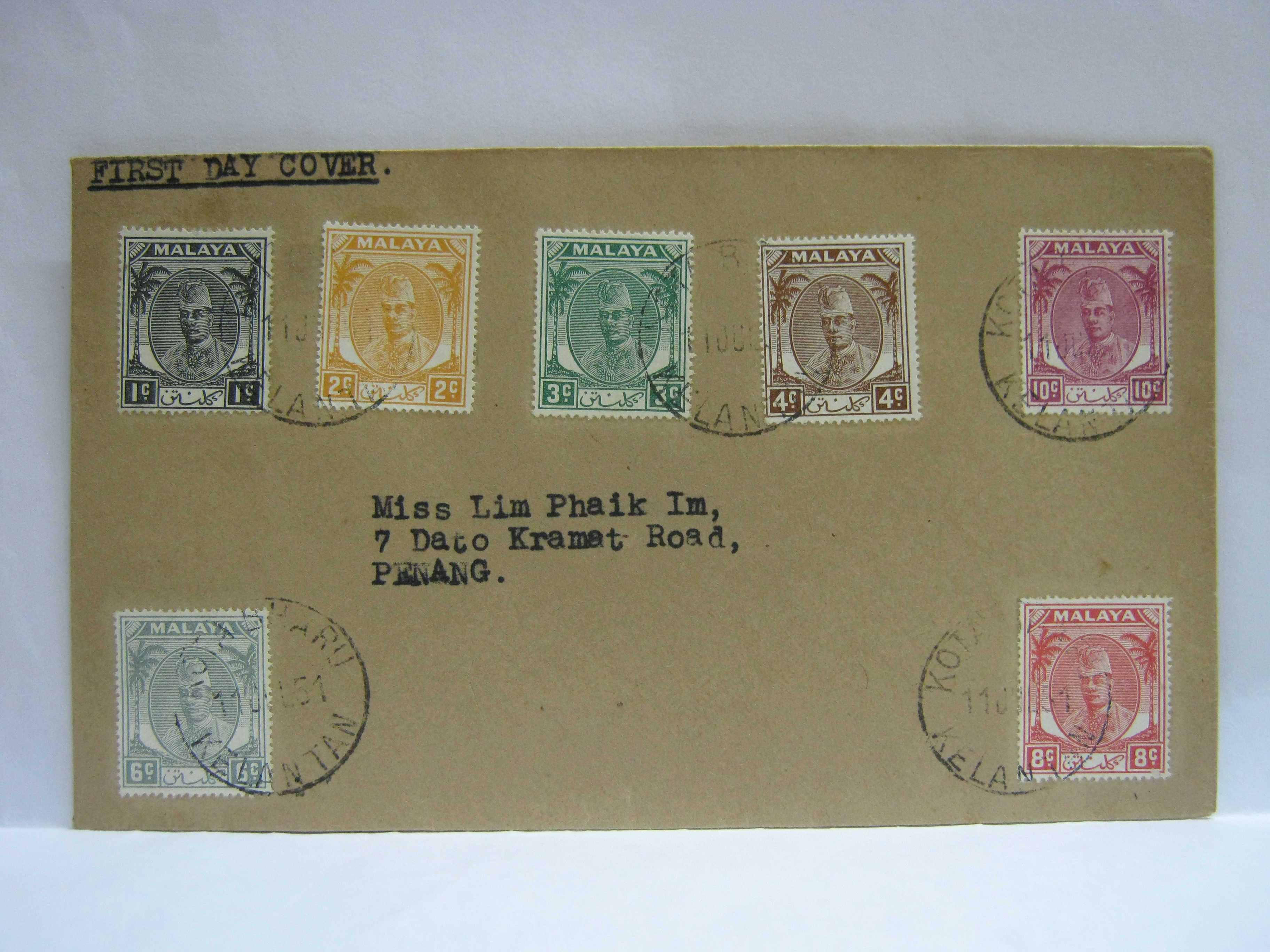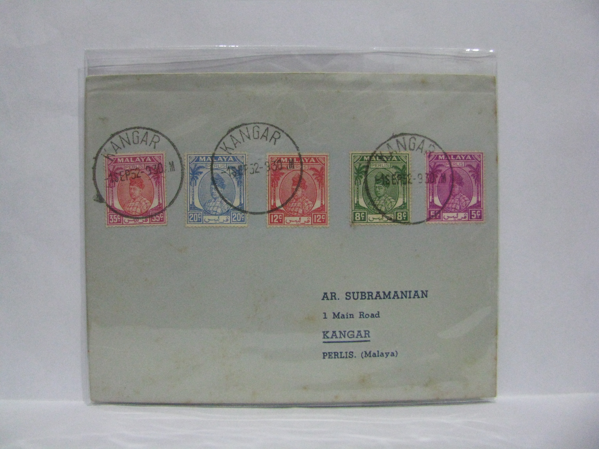 This FDC was cancelled in Kangar and affixed with the definitive stamps issued on 01 September 1952. It is pretty hard to get a full set of definitives cancelled on the day of issue especially in Kangar.