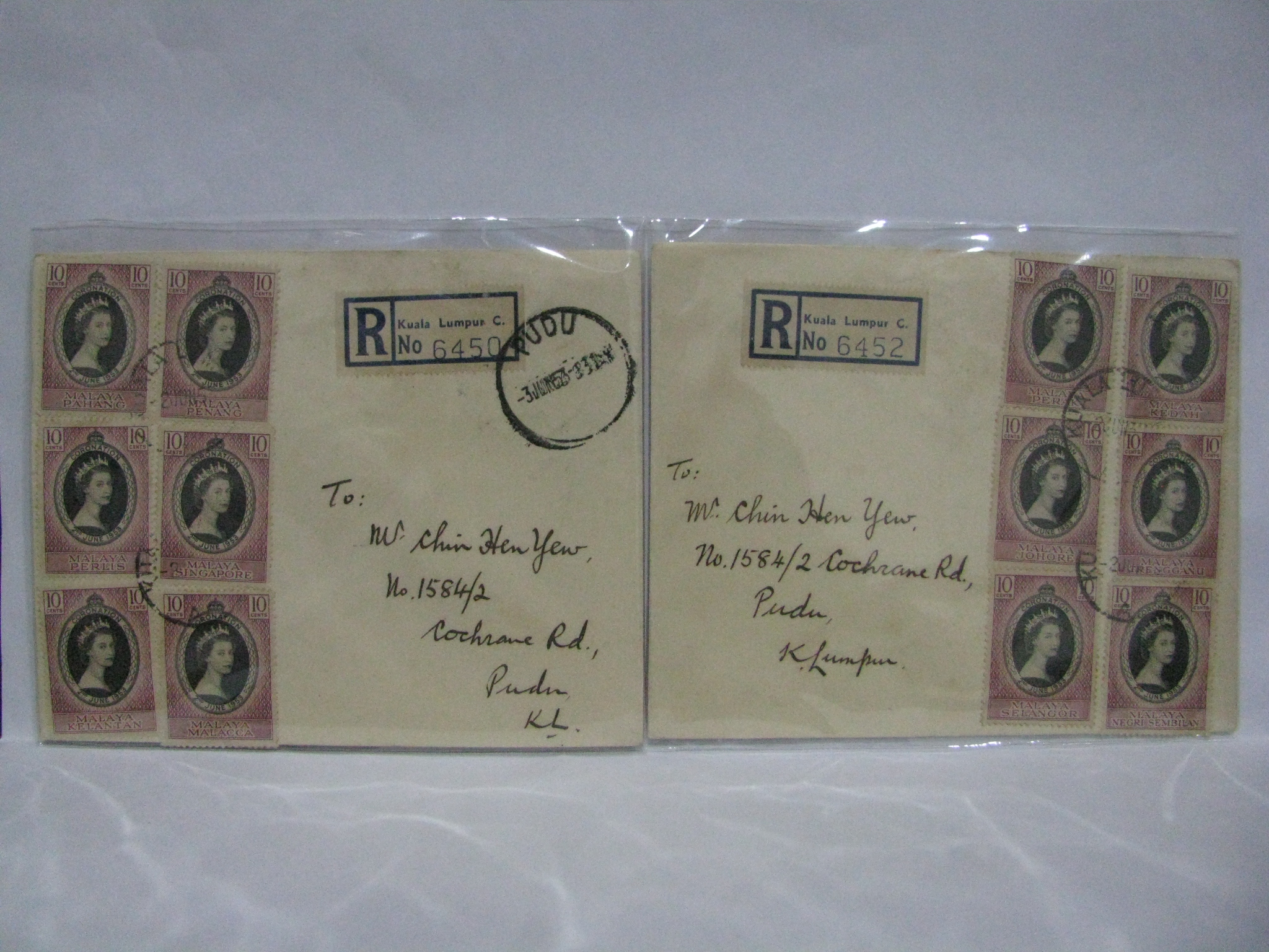 These 2 FDCs made up a full set of 12 states’ stamps on cover cancelled in Kuala Lumpur and sent via registered mail.