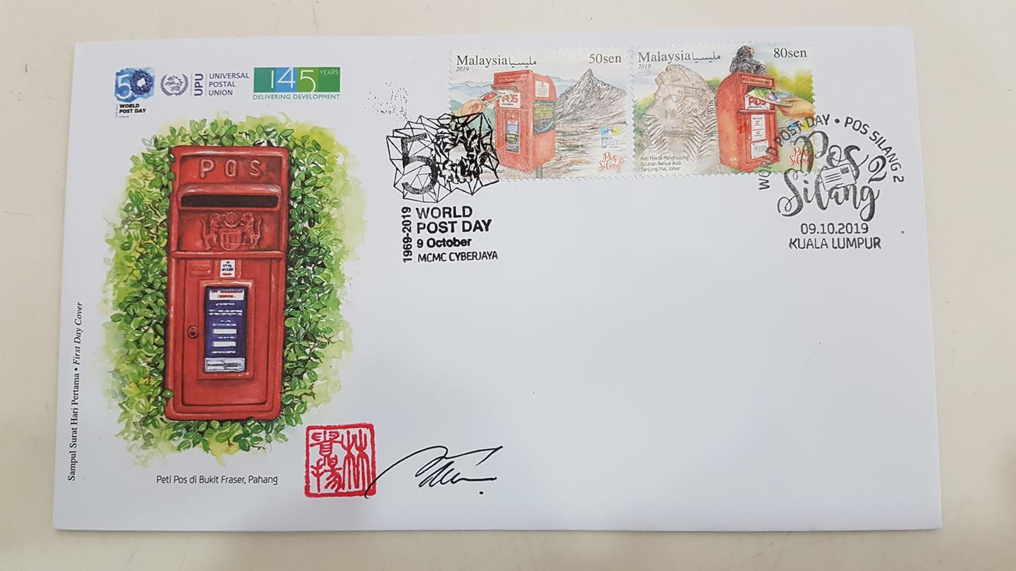 2. MCMC special cancellation and the KL cancellation World Post Day FDC (autographed in the morning by KY Lim):