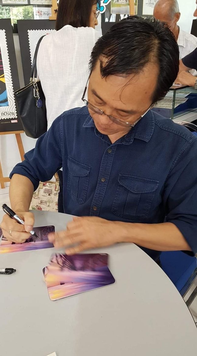 The designer, Mr KY Lim, came to autograph after 09:00 am. There was quite a lot of collectors who managed to get their covers, postcards, posters and folders autographed.