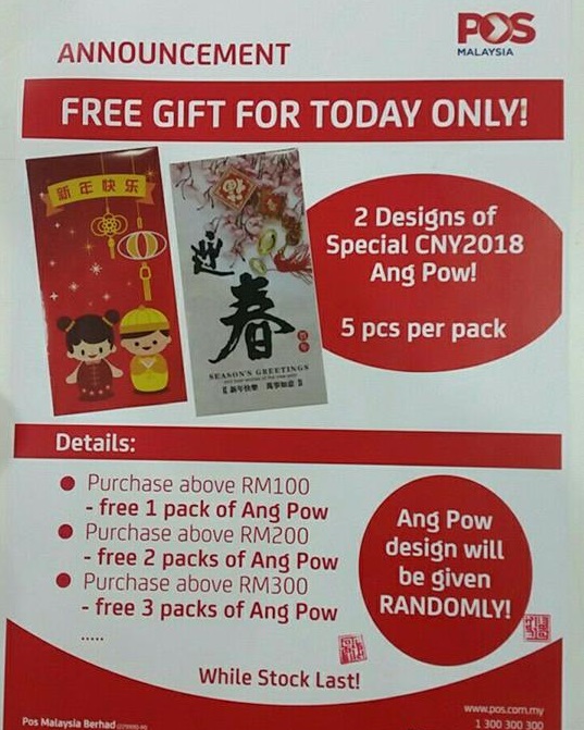 In addition, Pos Malaysia gave out packets of ang pows (Red Packets) for purchases of RM 100.