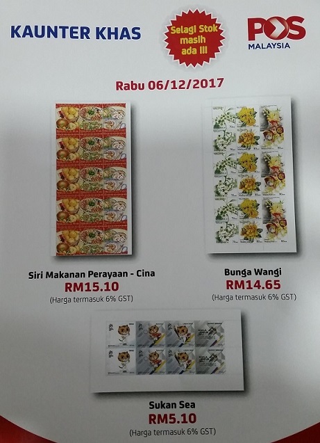 The MRT setenant strip was on sales this morning. The initial response was lukewarm. However just before 10:00 am, the MRT setenants were sold out! This prompted Post Malaysia to bring out the Community Postman (World Post Day 2016) setenant stamps! The Pos Silang setenants were still available.