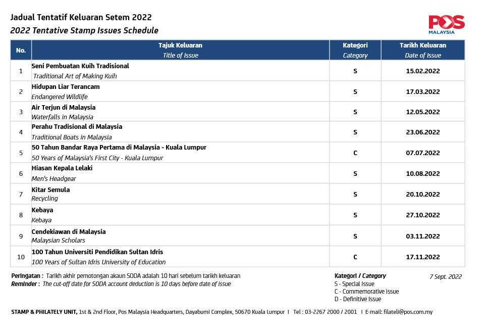 There is a surprising Recycling stamp issue (Kitar Semula) and 100 Years of Sultan Idris Universiry of Education (UPSI)!