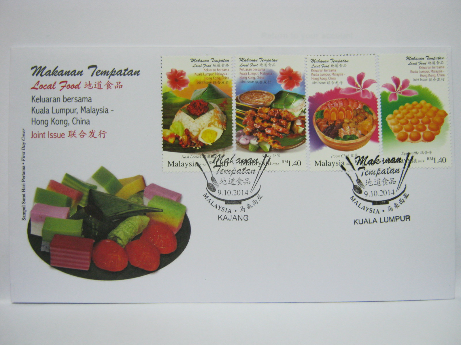 I have a few sets listed: http://www.ebay.com.my/itm/Pair-Kajang-Local-Food-Malaysia-Hong-Kong-Joint-Issue-FDC-First-Day-Cover-2014-/361083886826? <Sold Out>