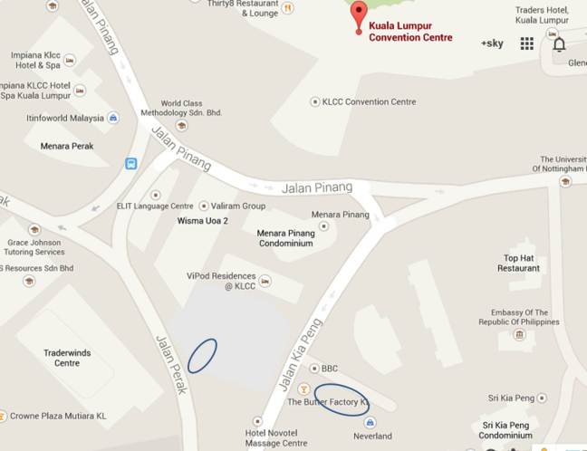 4. If you are driving find an affordable parking. Refer to the simple map below with the flat rate parking area circled. There is also a DBKL parking along the Kraftangan Malaysia (Jalan Conlay)….that is if you are very early. However parking here is by meter with blocks of 4 hours.