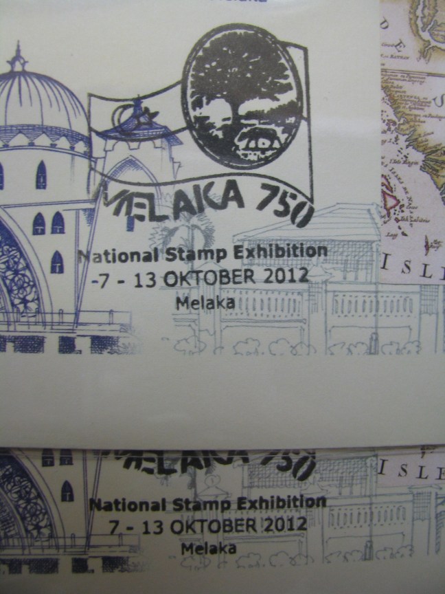 07 October 2012: Literally a day as you will realise at the end of this posting! I managed to get my flight out from KL on Monday, so I drove south to the historic city to make special FDCs again (of course)! I came early to Melaka (Malacca) to try and get my hands on some special cancellations and the overprinted Miniature Sheets. The exhibition site is right smack in the UNESCO World Heritage enclave. The exhibition is held inside Balai Seni Lukis Melaka (left building in the photo).