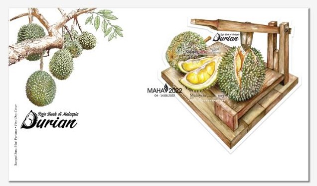 - You can order online at: https://www.pos.com.my/maha-2022-overprint-set-bunga-boleh-dimakan-raja-buah-di-malaysia-durian-miniature-sheet.html