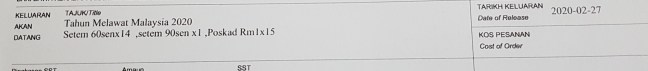 The Visit Malaysia Year 2020 stamp issue stated in the SODA statement indicated that there will be 14 types of 60 sen stamps most likely to represent the 14 states and Federal Territory in Malaysia. There is a 90 sen stamp.