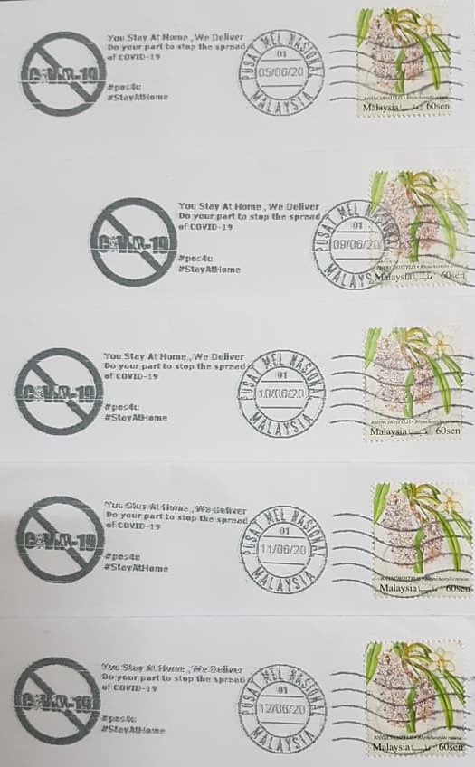 Most of my mails were postmarked with the anti COVID-19 logo slogan cancellation on 05 June 2020 and managed to get one of the other dates. That is good enough. The randomness of the dates increased as some mails posted earlier were postmarked towards the end.